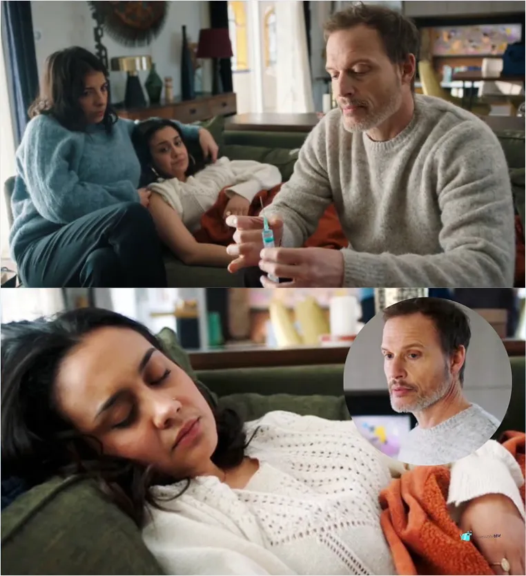 Samuel fait une piqûre de benzodiazépine à Noor pour la détendre car il sent qu’elle est à bout. Noor s’endort dans les bras de Soraya, sur le canapé.